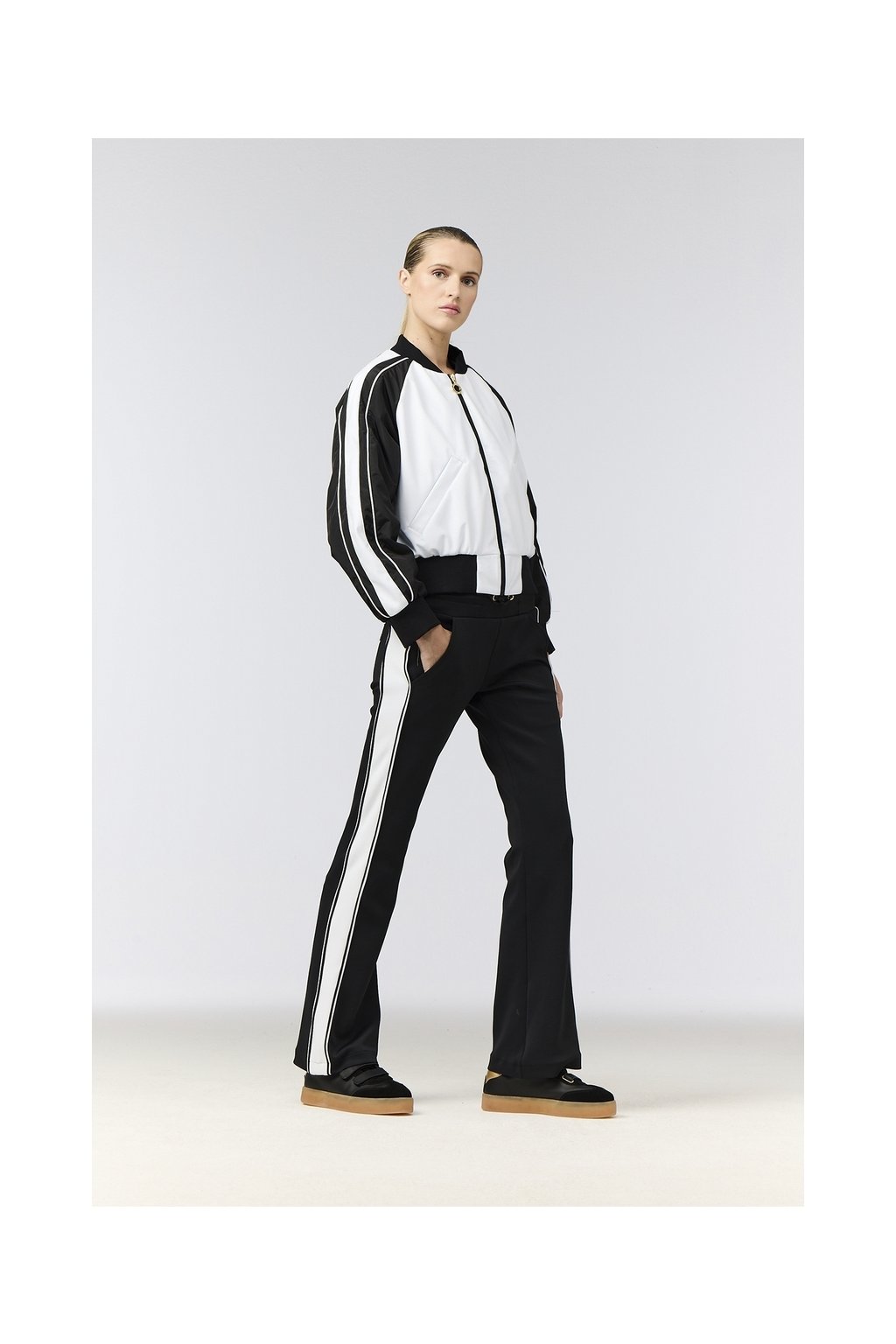 - kontrastný pruh po bokoch nohavíc