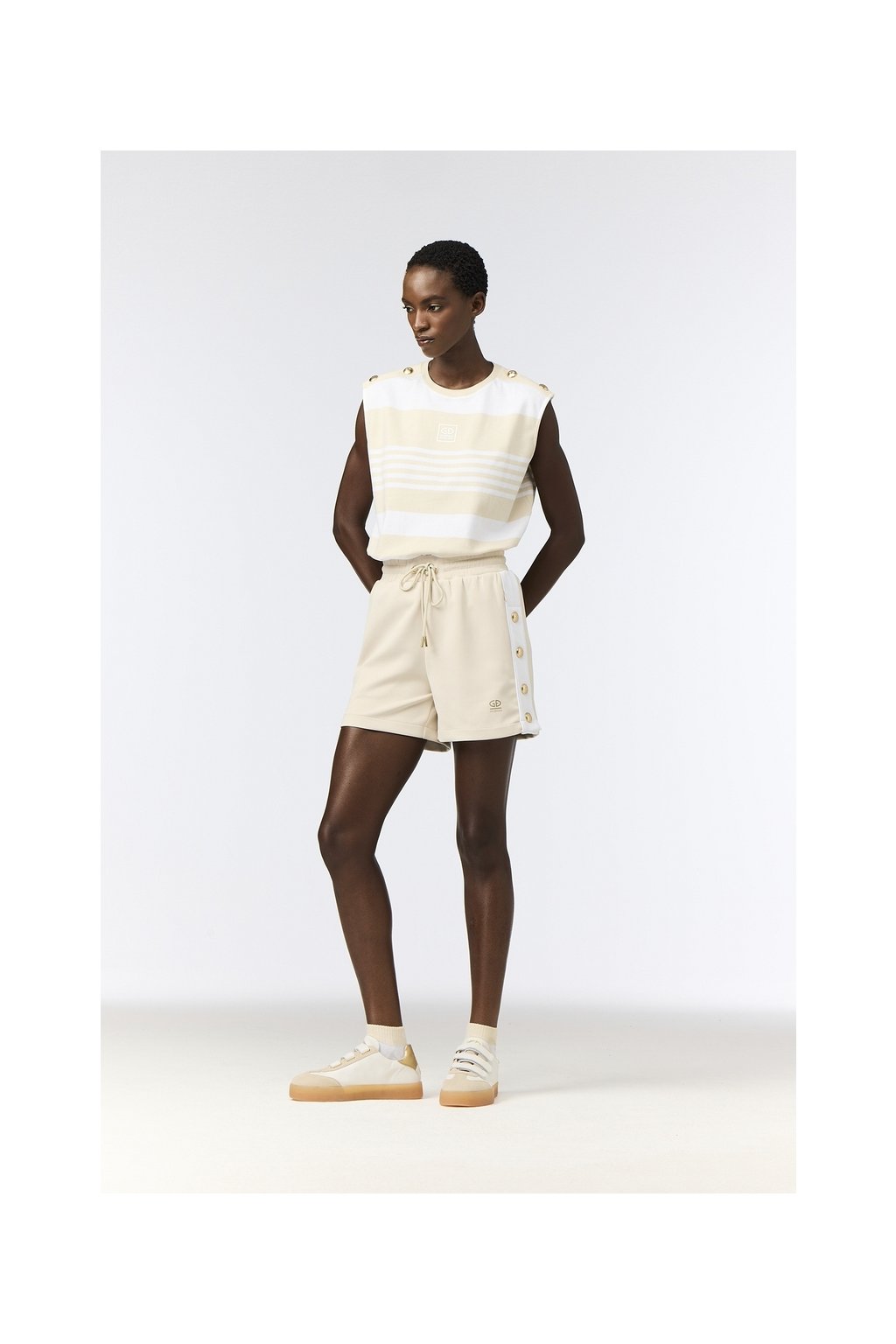 Športové šortky VANNA ponúkajú pohodlný strih, funkčný materiál a štýlové bočné detaily so zlatými patentmi. Ideálne na šport, voľný čas aj letný athleisure outfit.