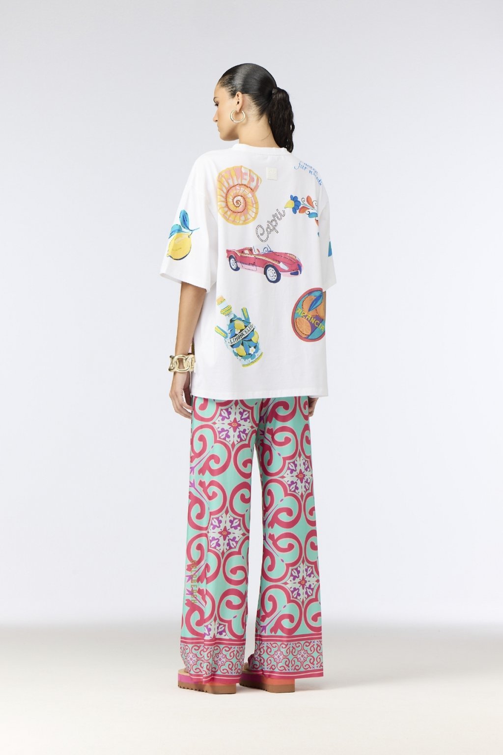 - celoplošný Capri inšpirovaný dizajn na prednej, zadnej strane a rukávoch