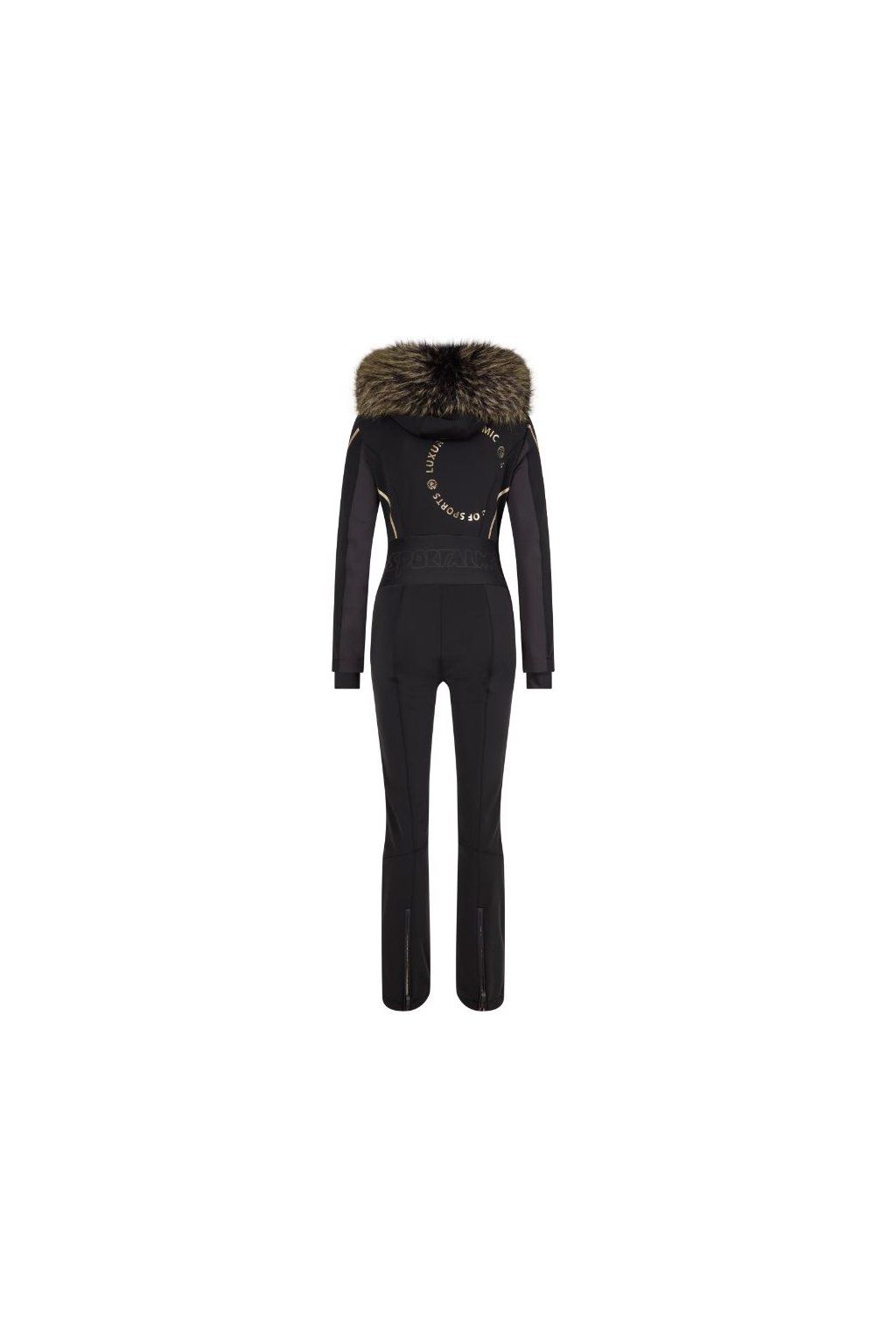 Dámsky luxusný overal je vyrobený z kvalitného funkčného materiálu, ktorý je zároveň pružný, takže neobmedzuje v pohybe. Na koncoch nohavíc sú zipsy pre lepšie obutie lyžiarskej obuvi. Overalu nechýba ani praktický zips, ktorým možno regulovať teplotu, ale aj spĺňa svoj účel pri navliekaní overalu. Kapucňa je lemovaná pravou kožušinou. Strih je jemne zúžený v páse, preto krásne kopíruje ženskú líniu a nositeľke zabezpečí krásny štíhly vzhľad. Tkanina má skvelé technické parametre v podobe vysokej vodeodolnosti (7 000mm) a vysokej priedušnosti ( 7 000g/m2/24h). Dizajn overalu je obohatený o doplnky v zlatej farbe, vďaka ktorým overal pôsobí nie len športovo, ale aj luxusne, módne a elegantne.